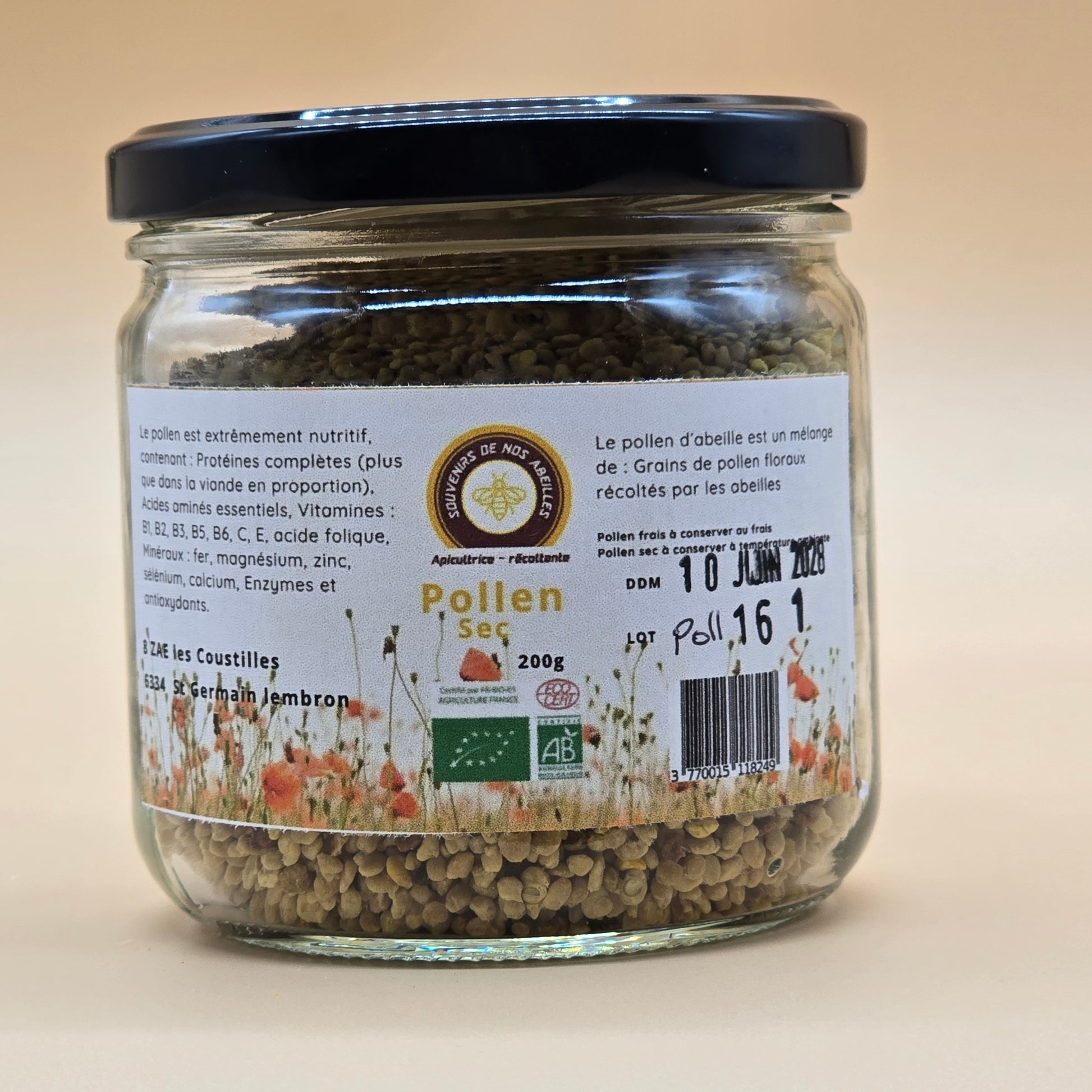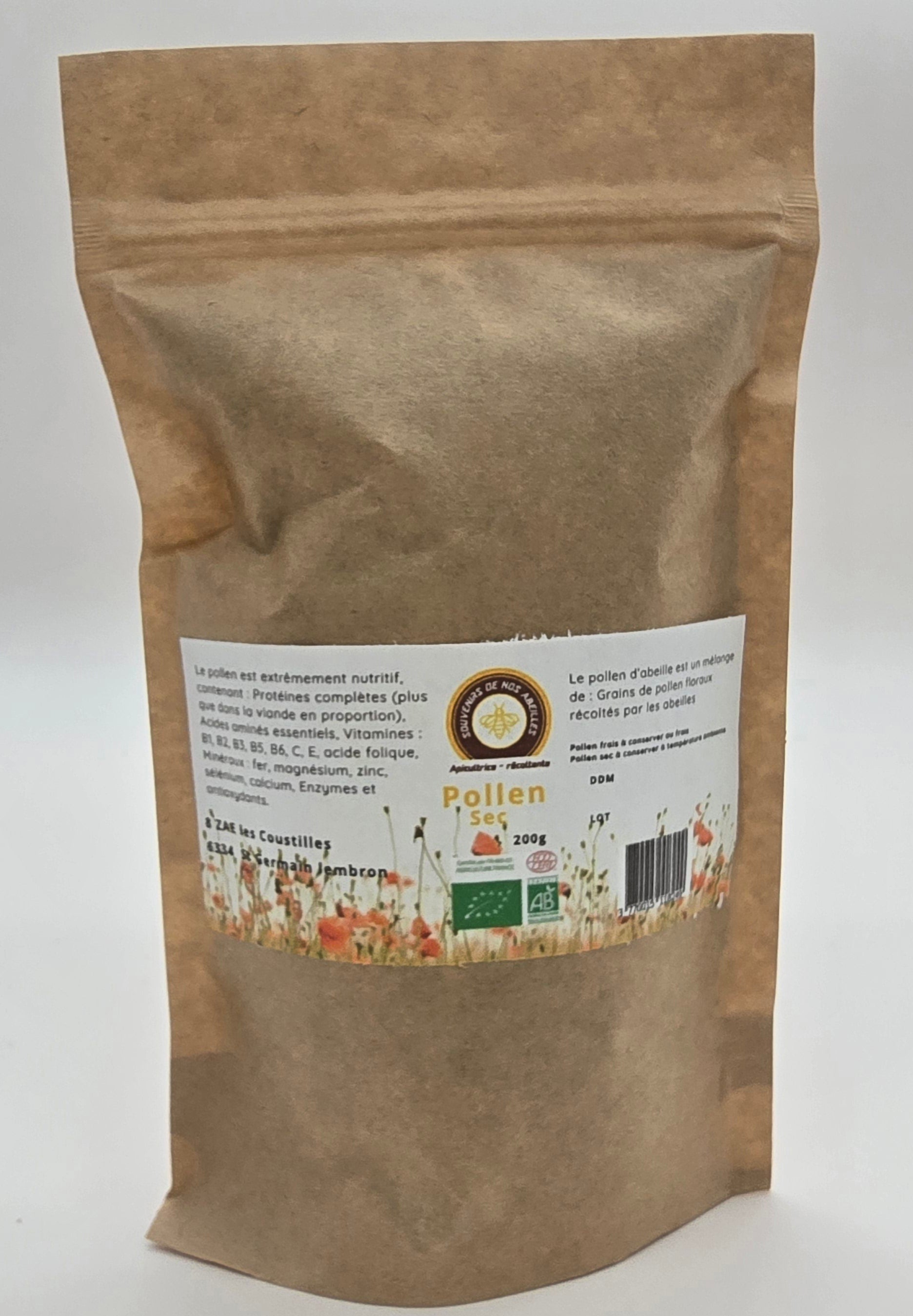 - Pollen sec (granulés, plus courant et plus facile à conserver)