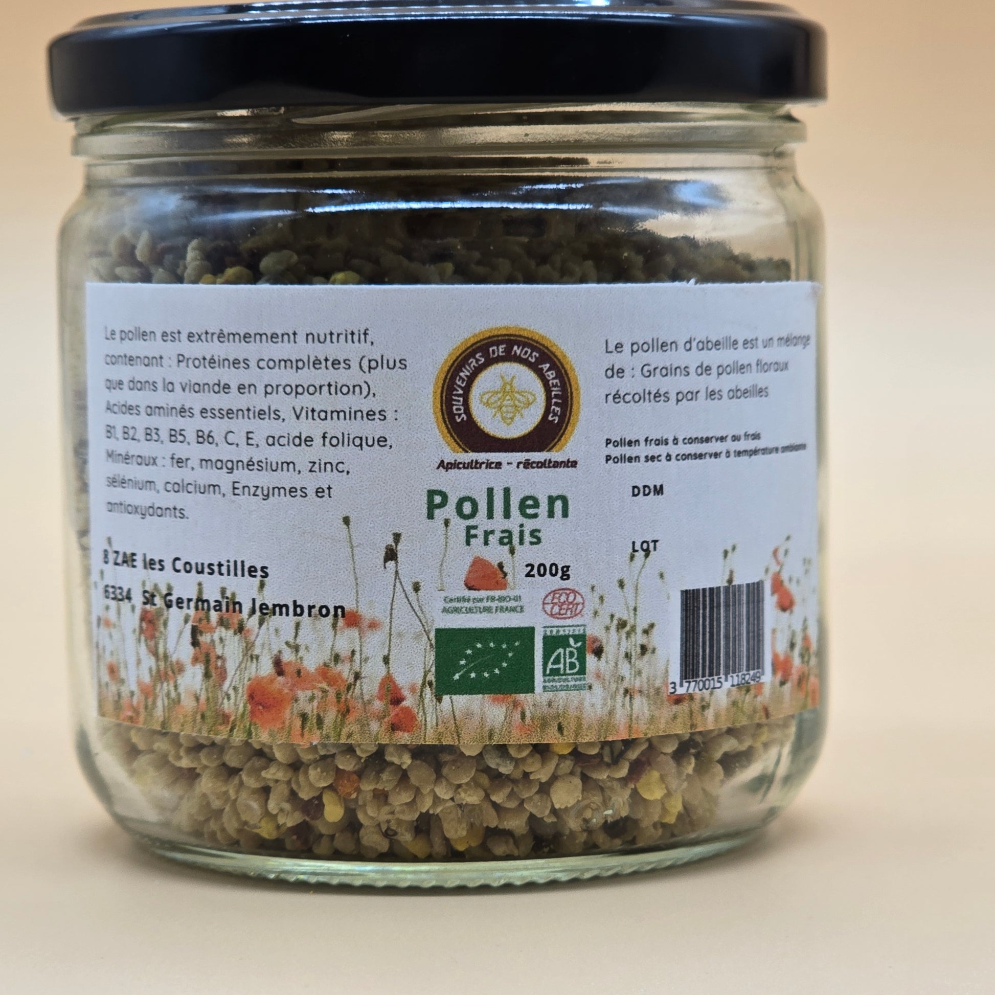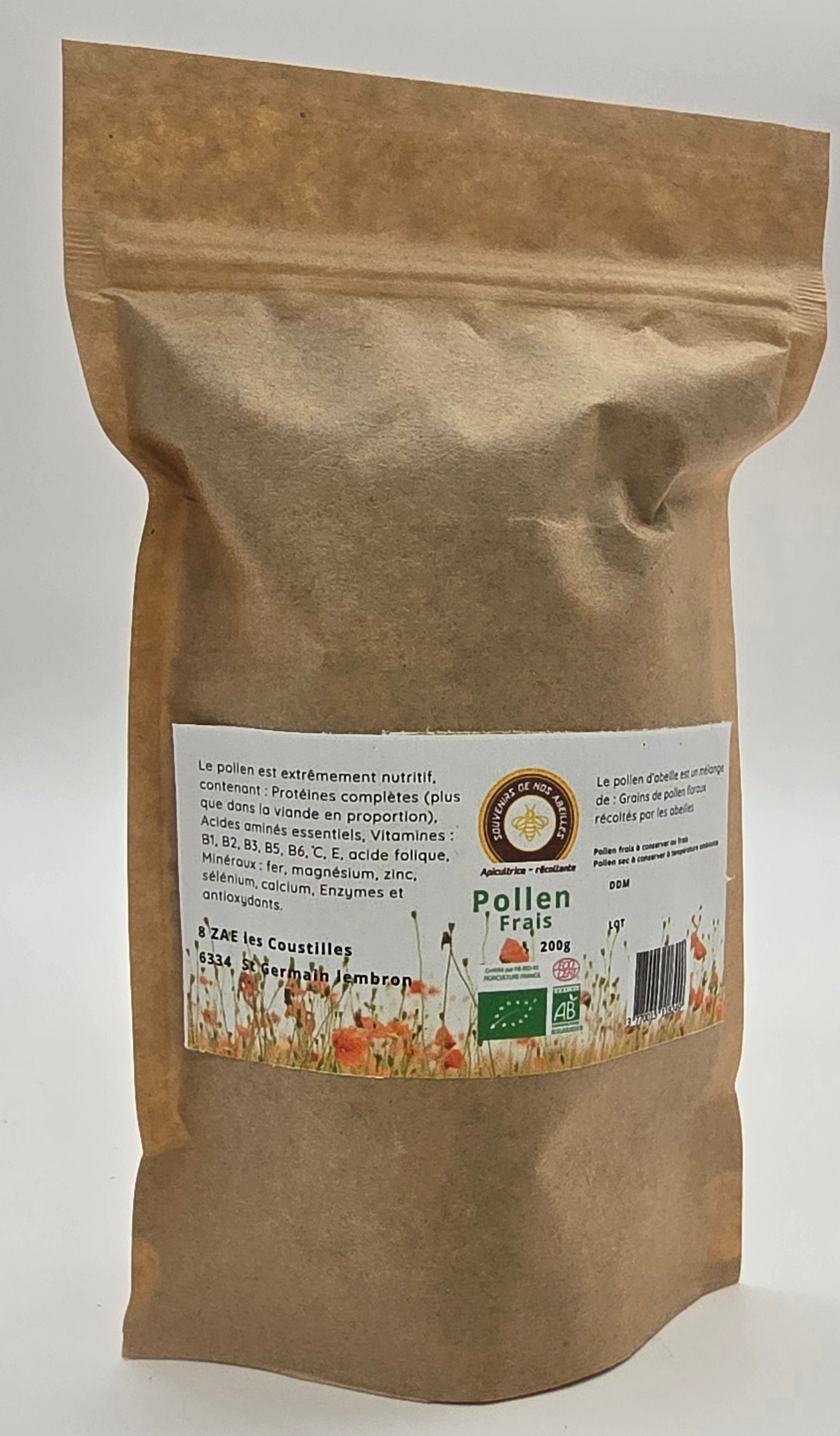 - Pollen frais (conservé au réfrigérateur ou congelé, plus riche en nutriments)