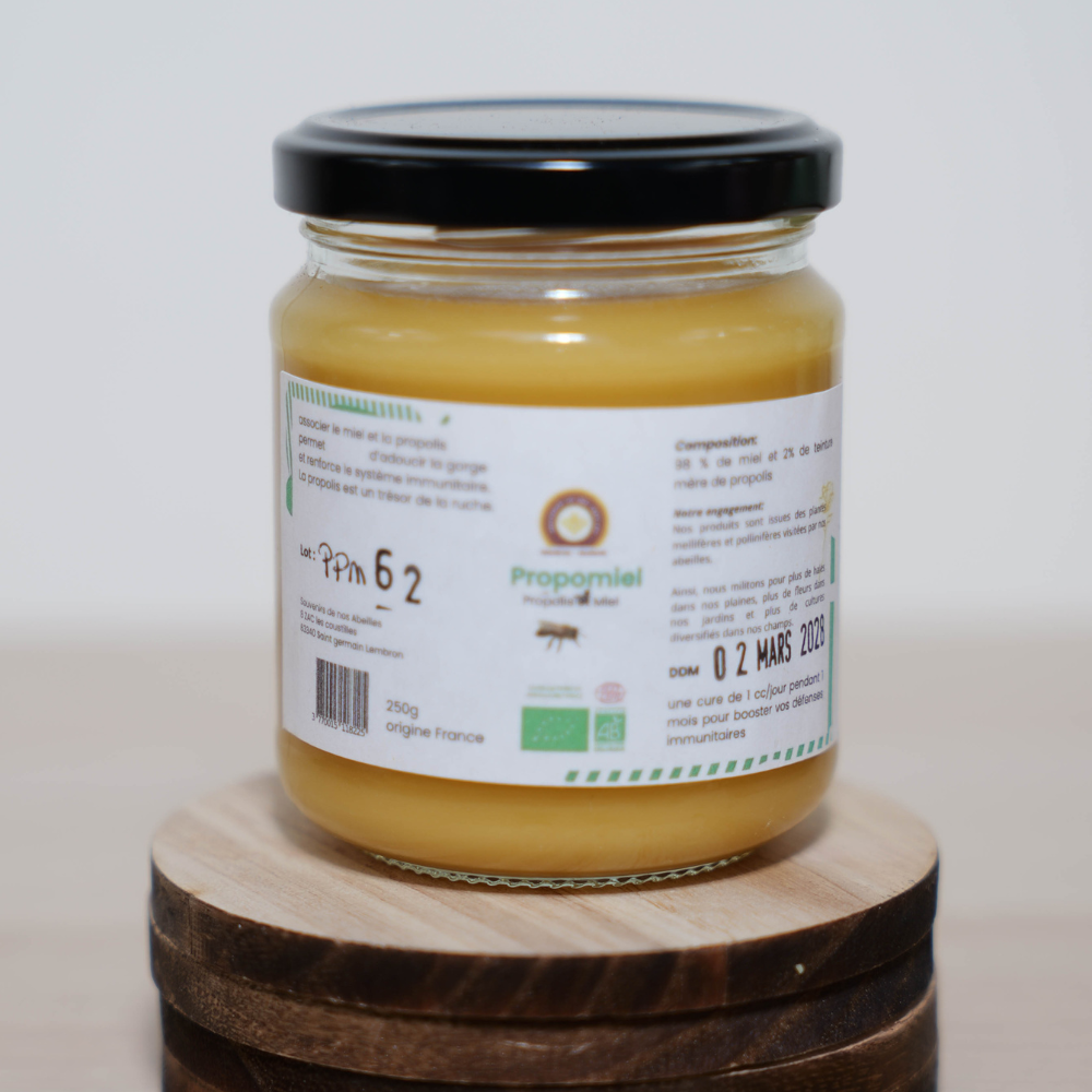 Le propomiel, est le mélange de propolis et de miel. C’est un remède traditionnel utilisé pour